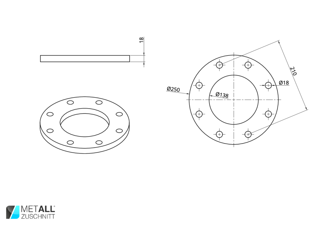 Flansch Ø250 Ø138 18mm