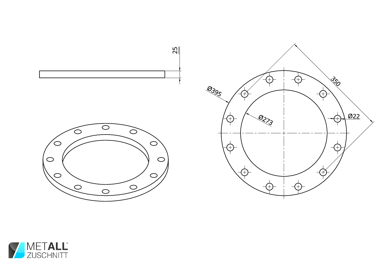 Maße: Ø395 Ø273 25mm