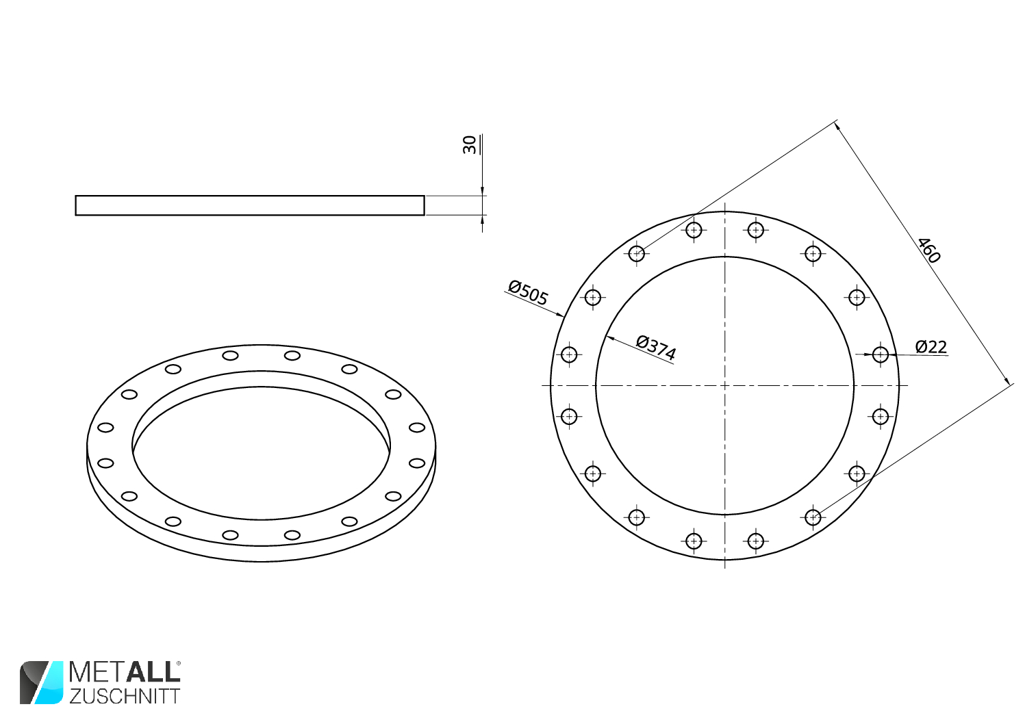 Maße: Ø505 Ø374 30mm
