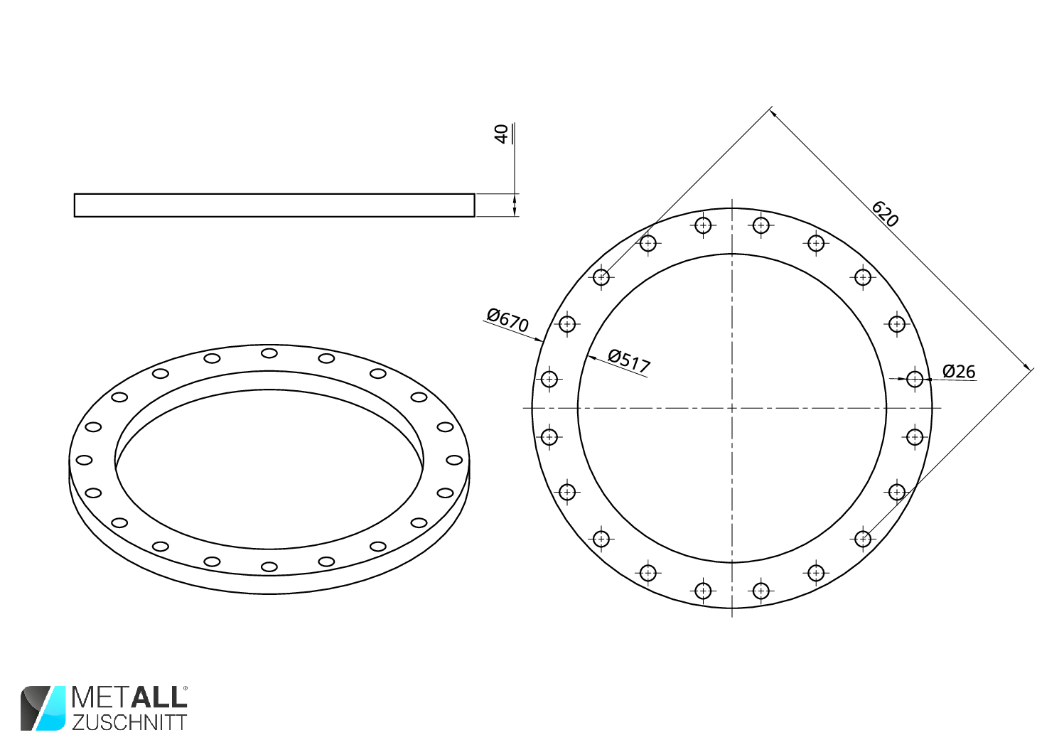 Flansch Ø670 Ø517 40mm
