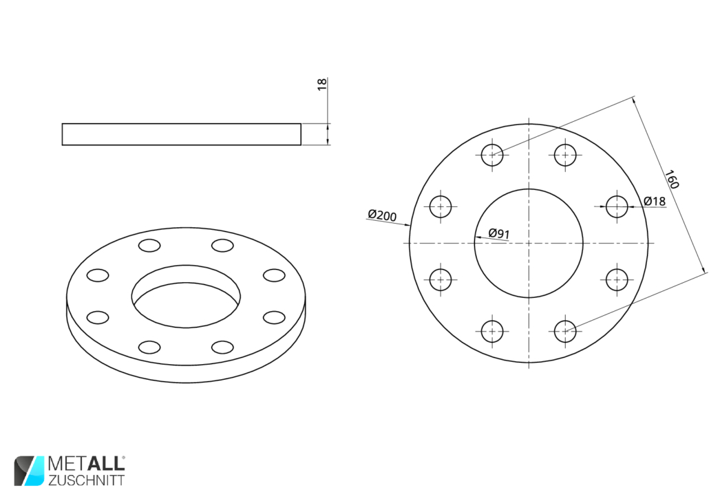 Flansch Ø200 Ø91 18mm